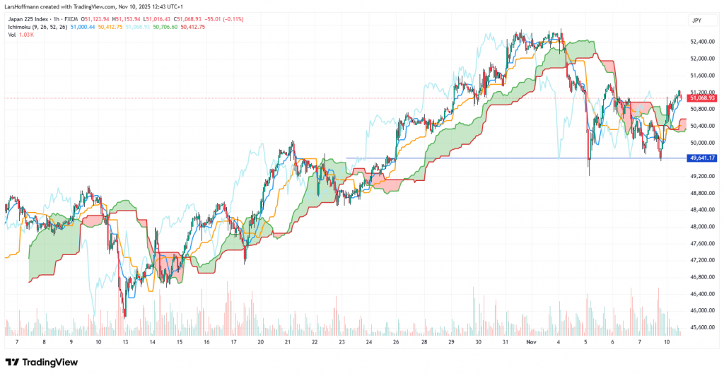 Die Erleichterung an den Börsen ist weltweit spürbar. Der Nikkei legte in der Nacht um 1,5 Prozent zu und bildete bei knapp 50.000 Punkten einen Boden. Besonders Technologieaktien waren gefragt.