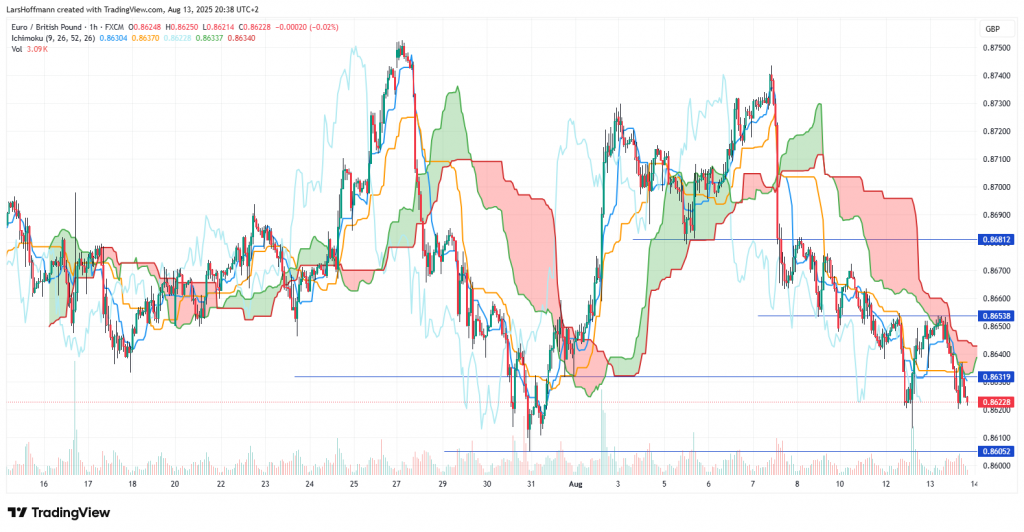 Die Zahl der Arbeitslosen ist im Juli überraschend um 6.200 gesunken. Erwartet wurde an der Börse ein Verlust von 19.700 Stellen. EUR/GBP zeigt weiterhin Schwäche. Bei 0,8605 dürfte eine Unterstützung warten. Ersten Widerstand erkennen wir bei 0,8655/80.