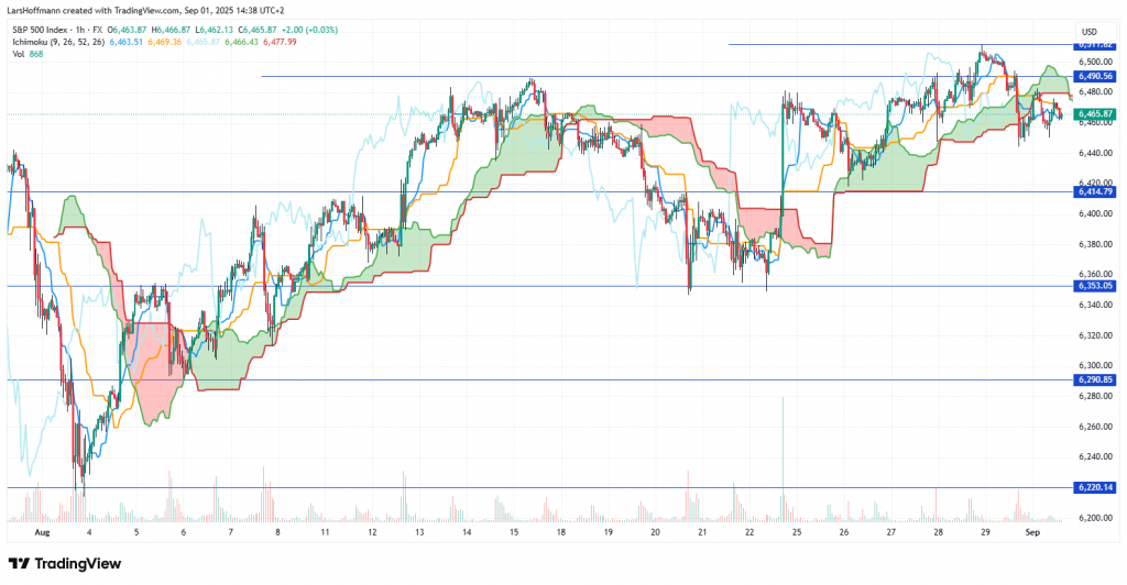 In den nahmen die Anleger vor dem langen Wochenende die Gewinne mit. Der Handel an der Wall Street pausiert heute. Vorher feierte der Markt noch einmal ein Rekordhoch. Theoretisch wäre nach dem Ichimoku im S&P 500 ein Test der 6.414 denkbar. Eine wirklich schlechte Stimmung dürfte am Markt jedoch angesichts der erwarteten Zinssenkung durch diese Fed nicht herrschen. Die Daten aus den USA waren durchwachsen, wobei das BIP im zweiten Quartal überzeugte. Ein Bruch der 6.414-Punkte-Unterstützung könnte den Index auf die Unterstützung bei 6.353 Punkten führen. Über 6.490 könnte die Rekordjagd weitergehen.