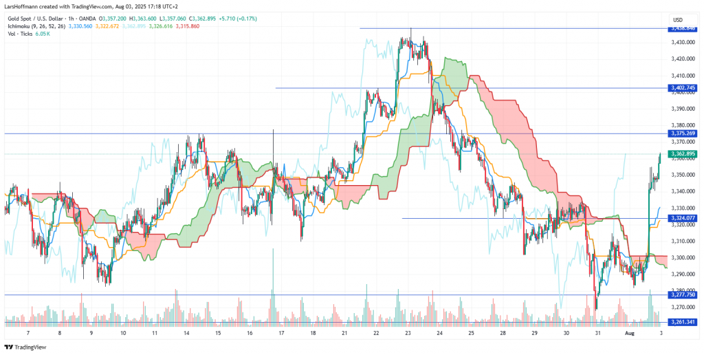 Von der gestiegenen Unsicherheit an der Börse profitiert Gold, das einen Boden gebildet hat und nun die Marke von 3.375 US-Dollar anpeilt.