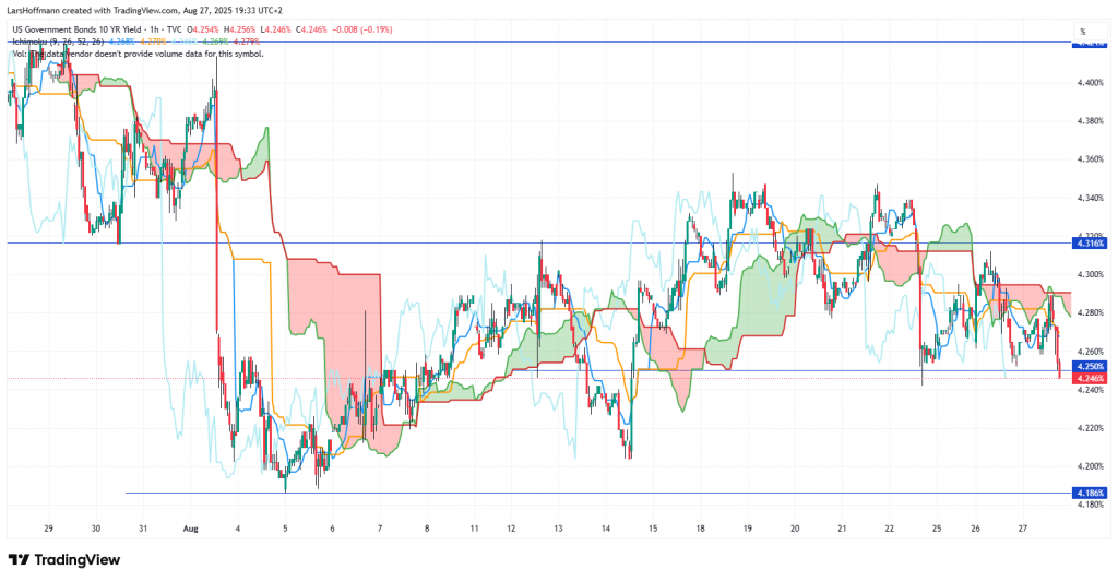 In Europa ist nach der Euphorie über eine mögliche Zinssenkung Zurückhaltung ausgebrochen. Als Hauptgrund wird die Regierungskrise in Frankreich genannt. Premierminister François Bayrou möchte am 8. September im Parlament die Vertrauensfrage stellen. Aktuell ist davon auszugehen, dass er diese verliert. Die Regierung hat keine eigene Mehrheit.