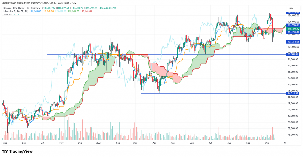 Nach dem letzten Allzeithoch vollzog die Kryptowährung eine deutliche Wertkorrektur. Dies ist nicht dramatisch, denn die Unterstützung bei etwa 107.000 Dollar hielt. Allerdings fällt auf, dass die neuen Hochs nicht mehr so dynamisch ausfallen, wie in der Vergangenheit. Möglicherweise steht Bitcoin vor einer größeren Korrektur. Selbst die Bundesbank behauptete zuletzt, dass der Bitcoin ein sicherer Hafen war. Ein Argument war, dass sich die Volatilität verringert hätte. Dagegen spricht meiner Ansicht nach, dass sich der Bitcoin eher wie die Aktienindizes verhält, die alles andere als sichere Häfen sind.