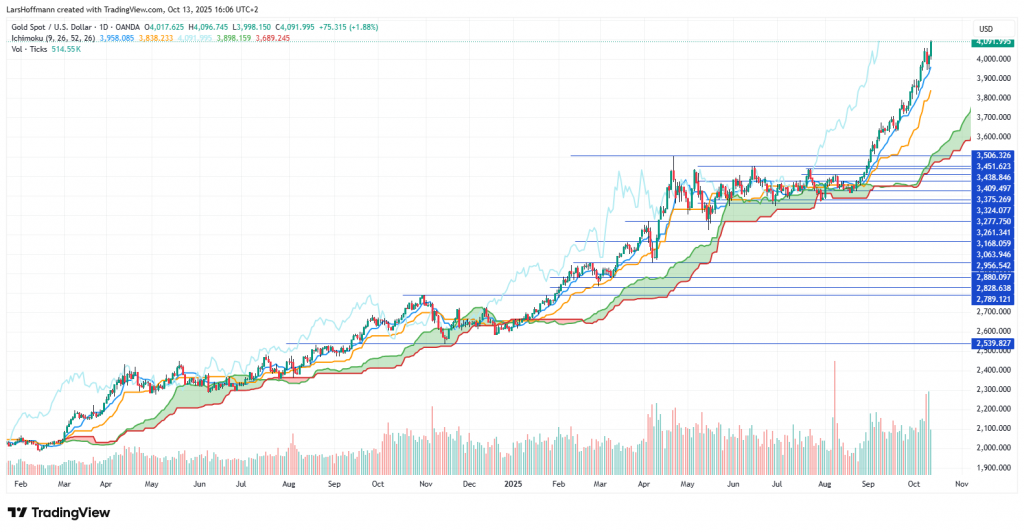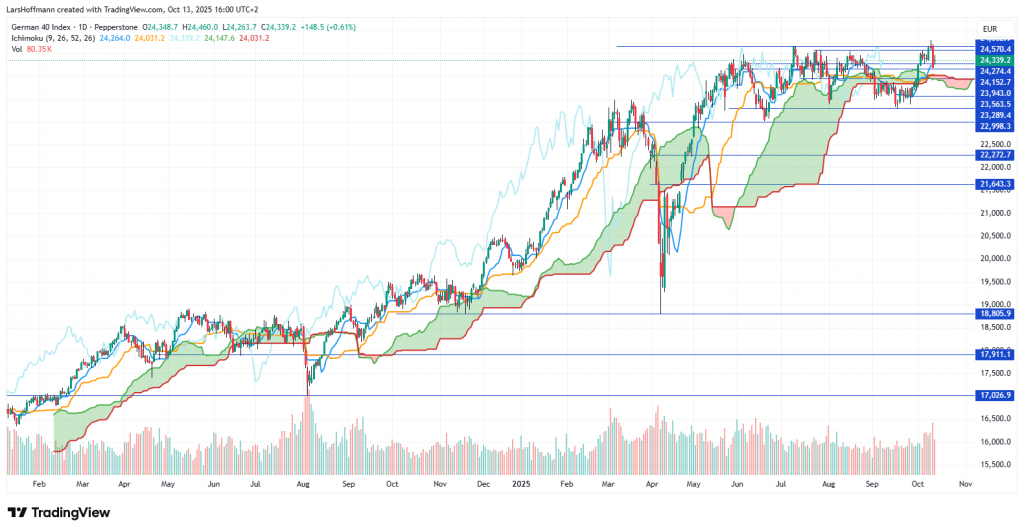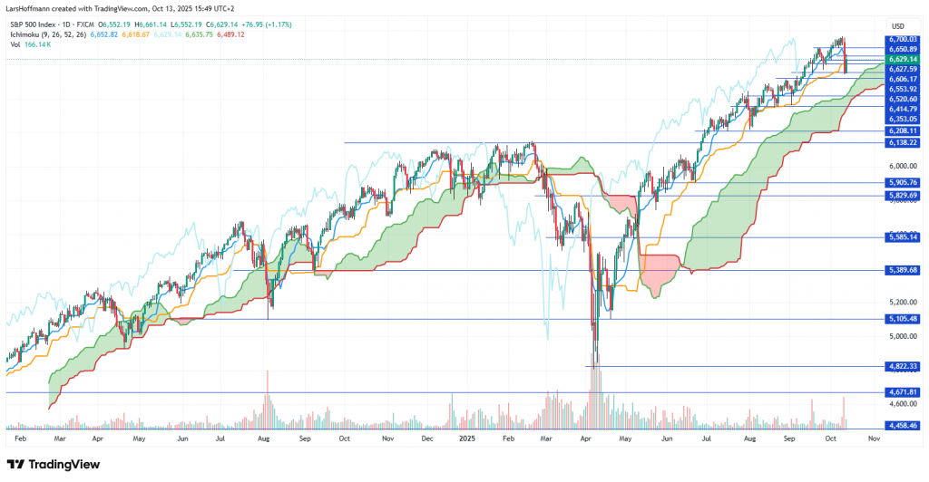 Die Börse hat sich vom Schock am Freitag schnell erholt. Donald Trump drohte China mit Zöllen in Höhe von 100 Prozent, weil das Land die Ausfuhren von Seltenen Erden weiter erschweren möchte. Die Erholung begründeten Anleger mit der Vermutung, dass Trump wohl nur eine Drohkulisse aufbauen wollte. Möglicherweise soll es auf dem ASEAN-Gipfel zu Verhandlungen zwischen den USA und China kommen. Alle anderen Krisen blendet die Börse weiterhin aus. Dies ist keine neue Situation.