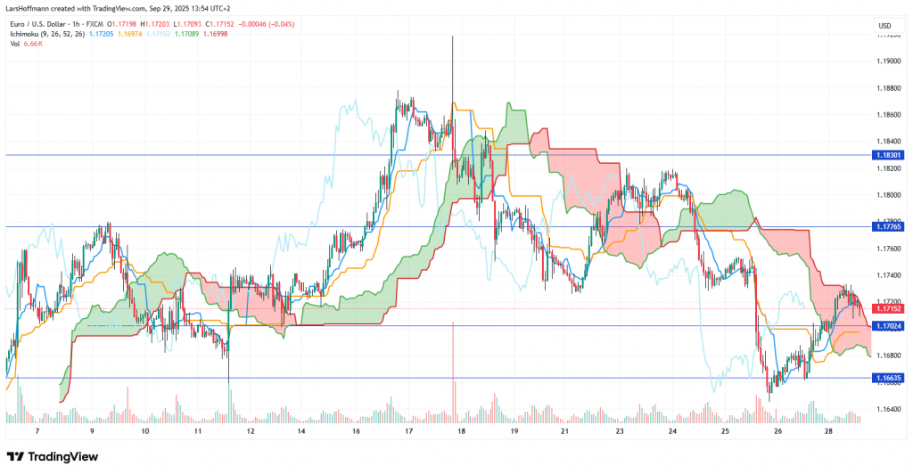 EUR/USD korrigierte in der vergangenen Woche bis knapp unter die Marke von 1,1660/45, verteidigte die Marke jedoch. Der Stundenchart sieht inzwischen wieder relativ freundlich aus. Der Kurs schiebt sich gerade wieder über die Wolke des Ichimoku. Trotzdem glaube ich, dass die Tendenz erst über 1,1780 bullish wird.