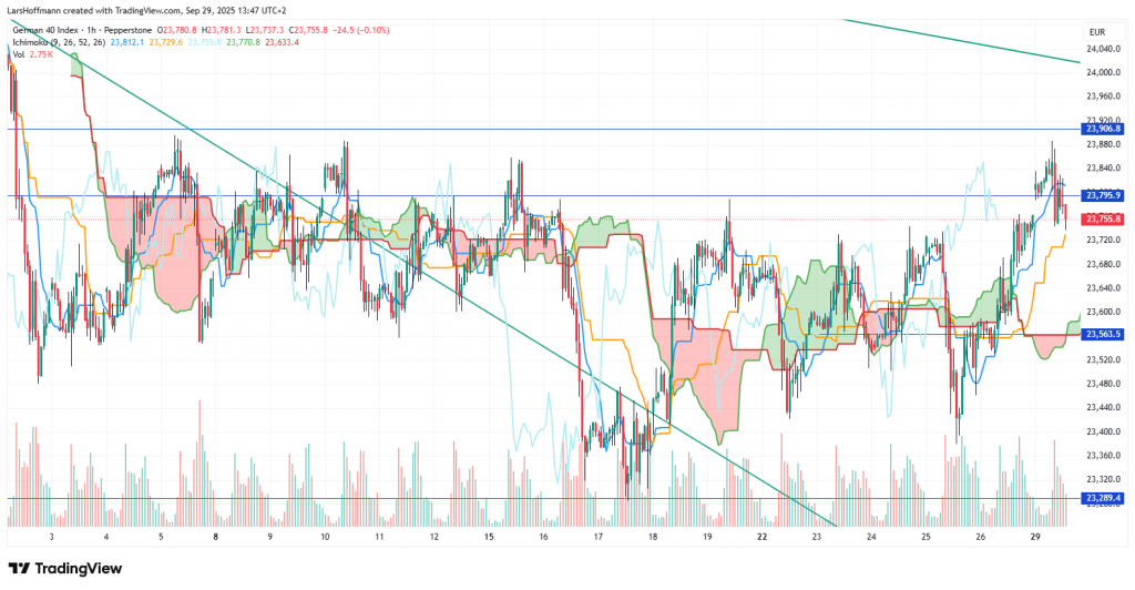 Aktuell gilt jedoch weiterhin, dass die Märkte viel Hoffnung einpreisen, die von der Wirtschaft bisher nicht bestätigt wird. Immerhin: Die Unsicherheit durch die Politik der USA und die unklare Wirtschaftspolitik in Deutschland drücken nicht nur die Stimmung der Manager, sondern auch jene der Anleger. Der DAX startete über der 21.800, fiel jedoch im frühen Handel wieder zurück. Den Anstieg zum Handelsauftakt führten die Anleger auf die intakten Zinssenkungshoffnungen durch die Fed zurück. Dass der Dax den wichtigeren Widerstand bei 23.905 Punkten nicht überwinden konnte, zeigt die Vorsicht der Marktteilnehmer. Unten könnte die Ichimoku-Wolkenlinie bei 23.560 einen ersten Support bieten. Darunter dürfte die 23.285 wichtig werden.