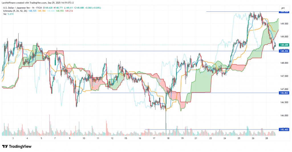 USD/JPY korrigiert nur moderat und verteidigt bisher die Unterstützung 148,45.